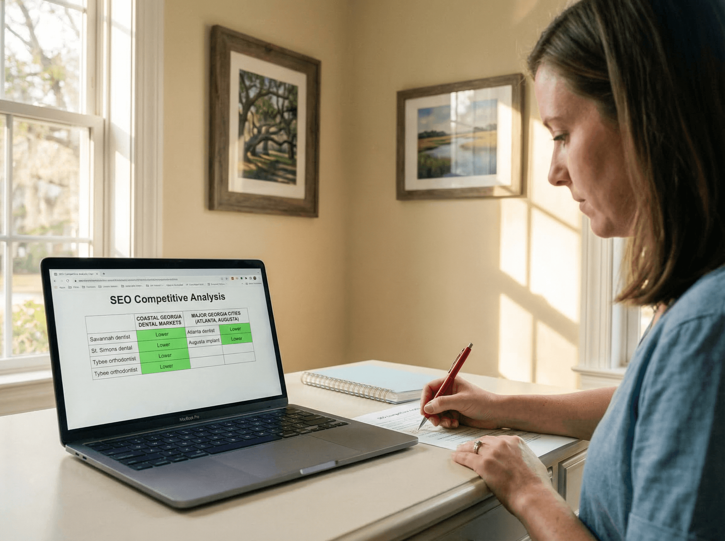 Generic dental SEO playbooks are built for average markets. Coastal Georgia isn't average — it's seasonal, transient in pockets, small-community in culture, and geographically distinct in ways that change how Google's local ranking signals work.